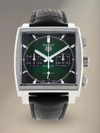 Swiss Replica TAG Heuer Monaco CBL2116.FC6497 Green Dial 39mm Watch With Black Leather Strap