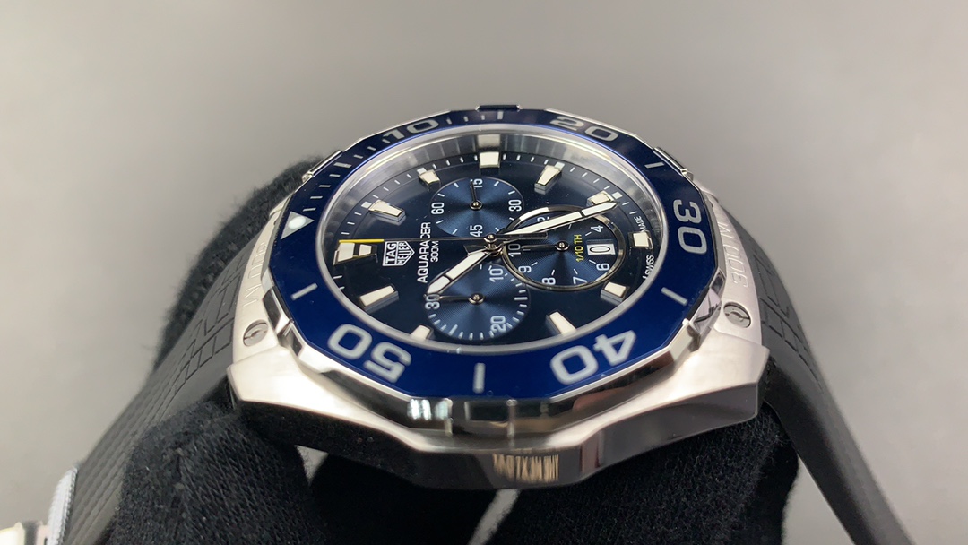 This TAG Heuer Aquaracer 300M Chronograph watch is perfect for diving enthusiasts and sports enthusiasts looking for a robust, sophisticated, and professional diver’s watch with the look and quality of a TAG Heuer Aquaracer watch at an unbeatable price!