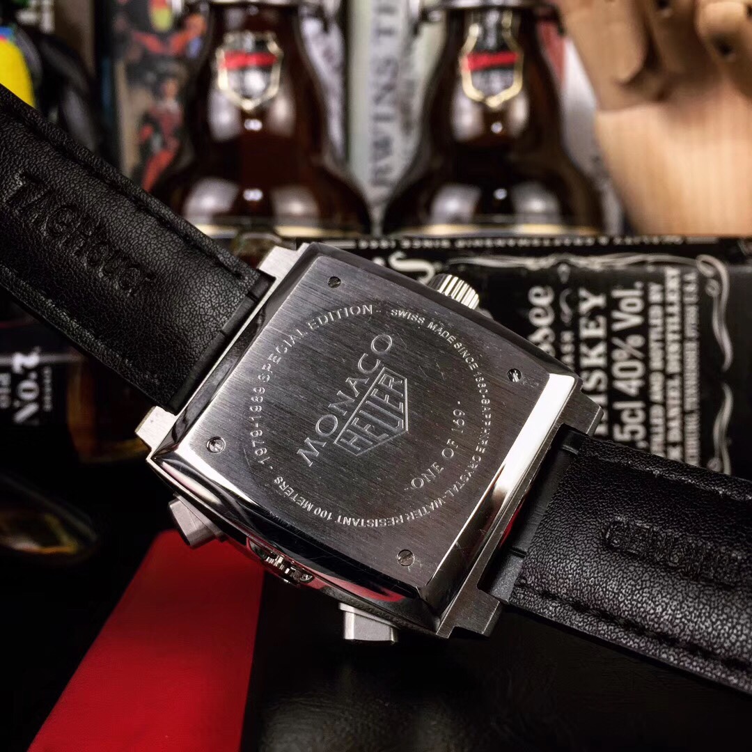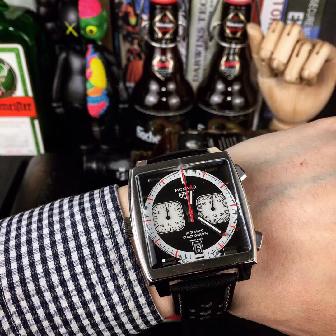 The replica TAG Heuer Monaco 580 swiss men's watch with a specially designed 39mm × 39mm stainless steel case with extremely complex designs for an exclusive elegant appearance. The Swiss movement adds to accurate and reliable performance of the watch along with the black leather strap for adding elegance and usability to the watch.