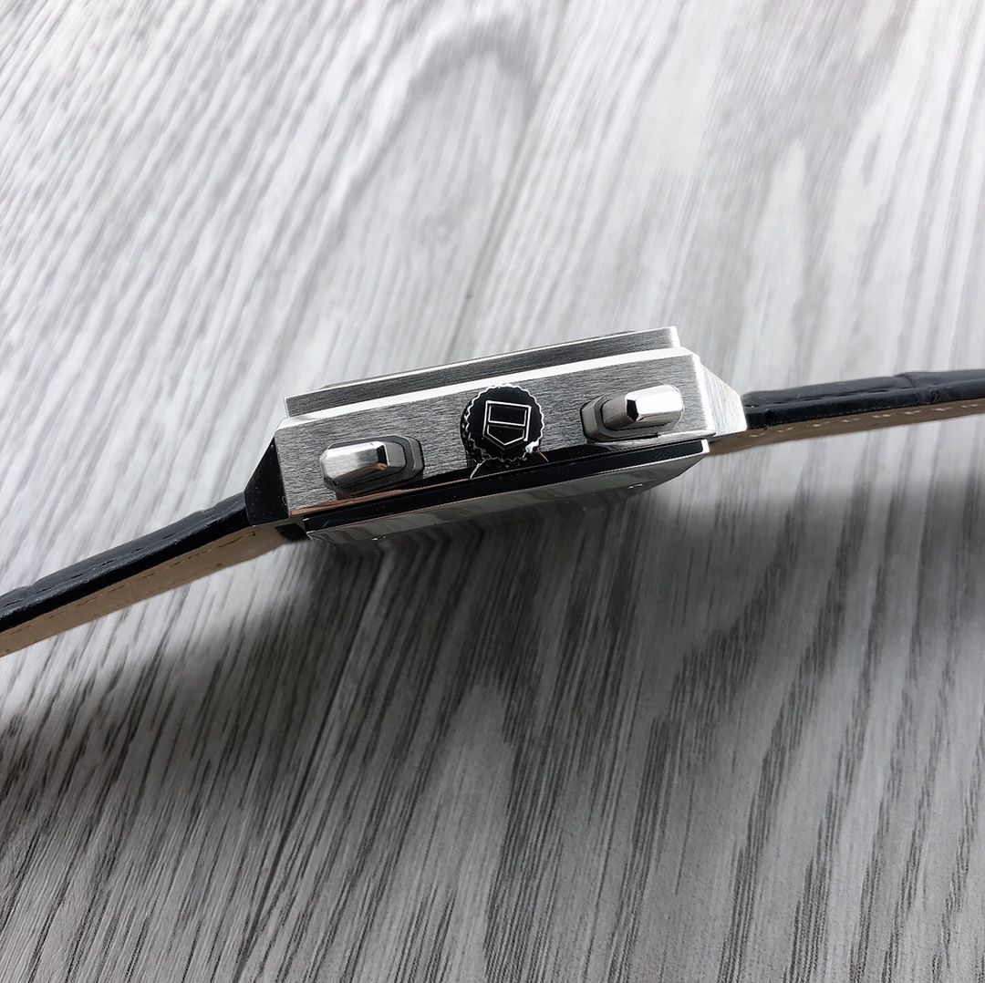Covered in a sapphire crystal, this Swiss TAG Heuer Monaco 580 replica male watch is very transparent and durable. Resistant to 50 meters, the Monaco 580 is ideal for those who love style just as much as they love functionality. This men's watch is a true replica of the original and provides a sophisticated Swiss experience with a sturdy double safety push-button clasp for extra security.