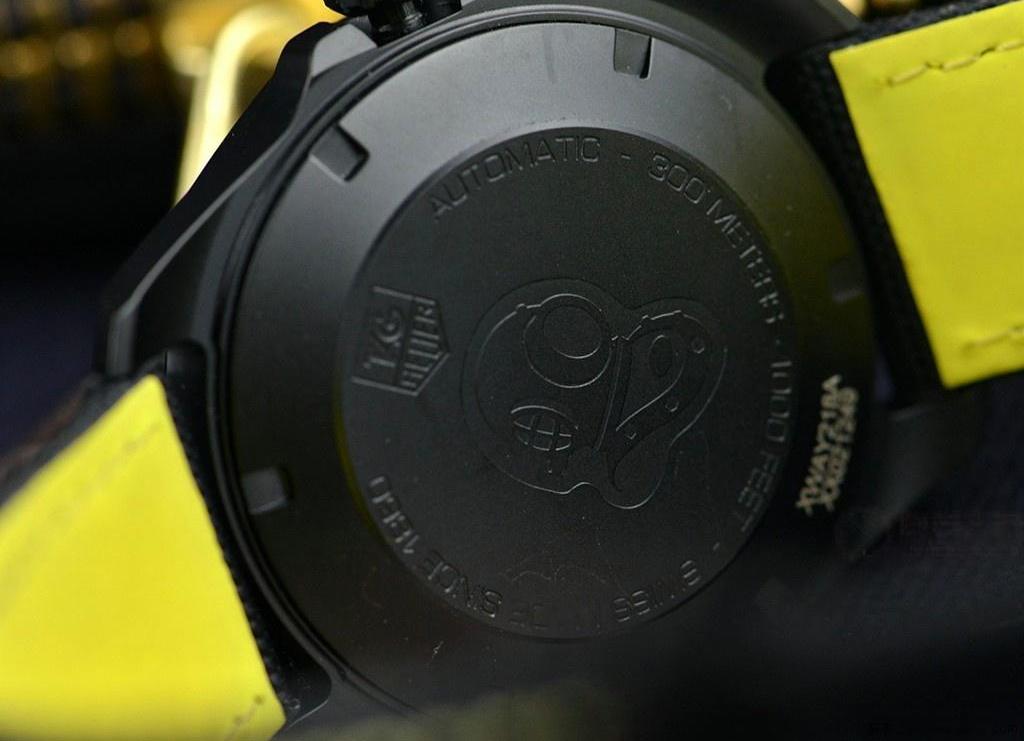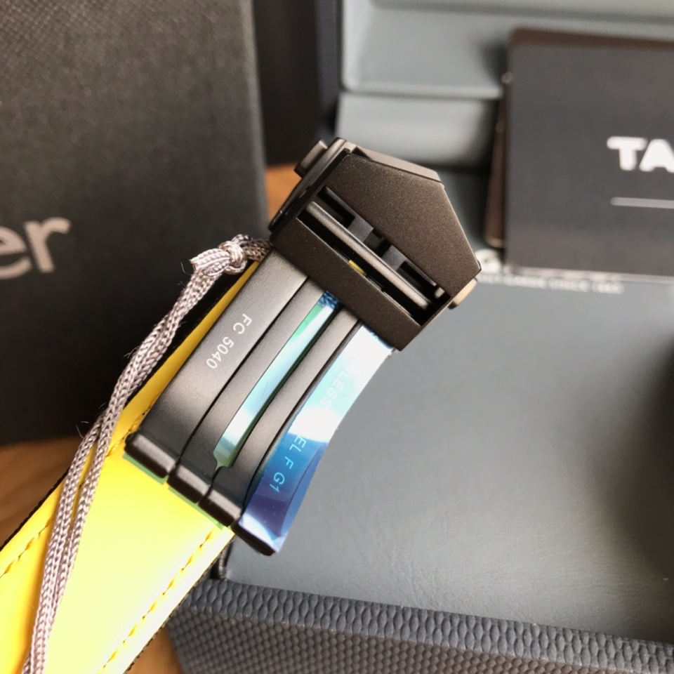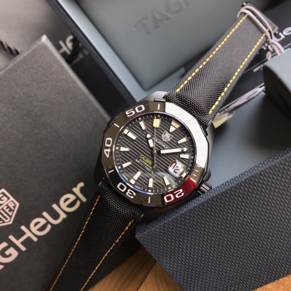 The Tag Heuer Aquaracer WAY218A.FC6362 replica is designed for individuals who need excellent performance and fashionable appearance. This watch comes with a 41mm black titanium case and a unidirectional bezel — built to handle whatever comes your way. The bold black dial with horizontal stripes gives it a cool, modern vibe, and the black nylon strap with that pop of yellow stitching makes it even more stylish.