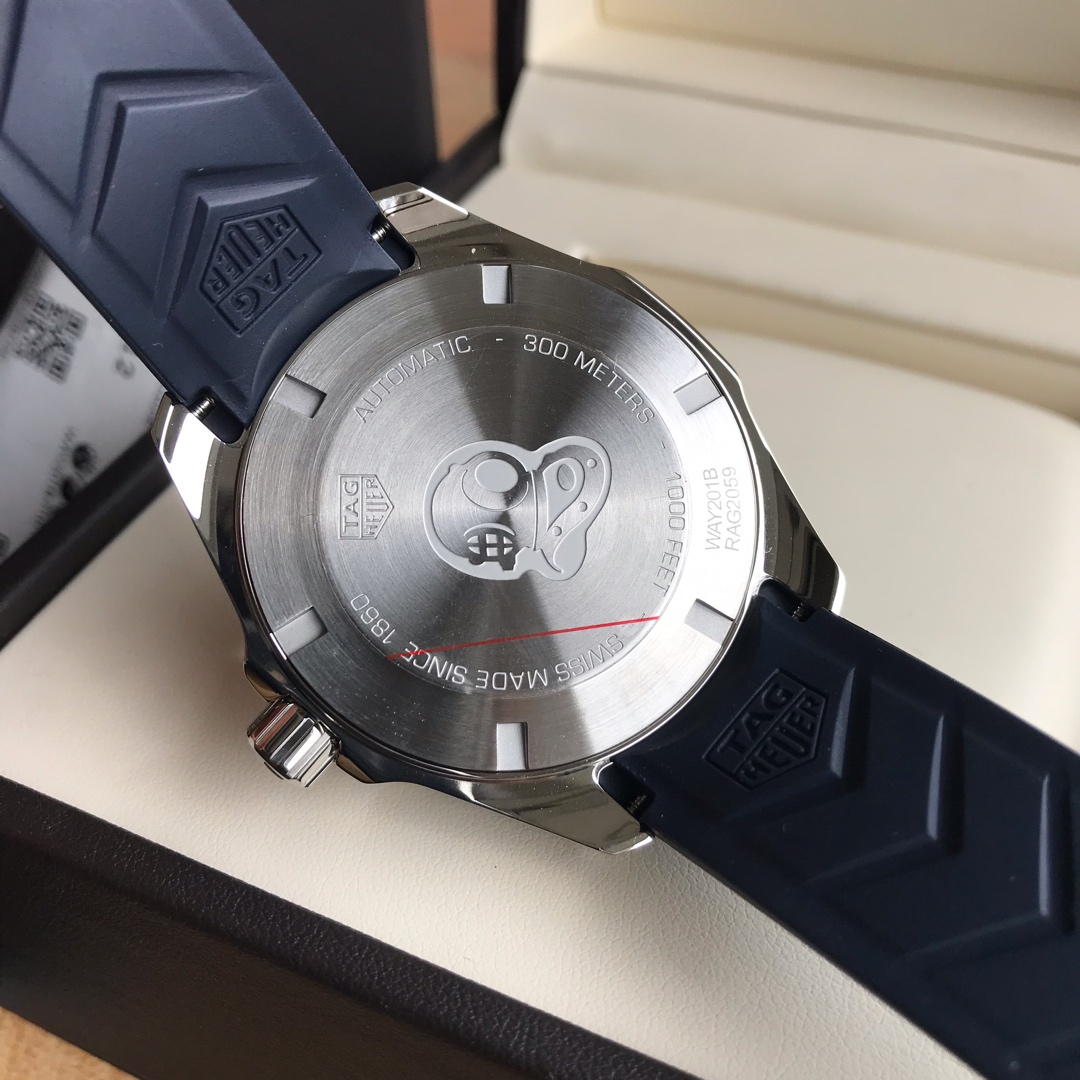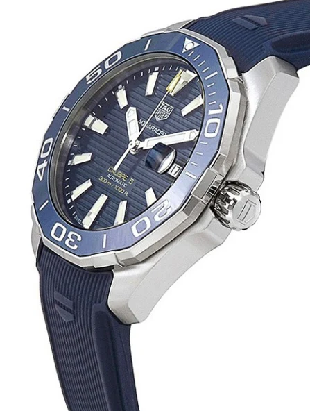 Presenting the TAG Heuer Aquaracer WAY201B.FT6150 replica, where style and sportsmanlike attitudes meet. The 43mm stainless steel case and revolving ceramic bezel make this watch a head-turner. Sophistication and elegance are brought by the blue sunray brushed dial, and comfort and durability are delivered through the blue rubber strap. Swiss movement provides the watch with precision and dependability. Sapphire crystal and 50-meter water resistance, it's a carefree choice for everyday wear and high-performance adventures. Surfing the wave or night out on the town, Aquaracer keeps you in sync in style.