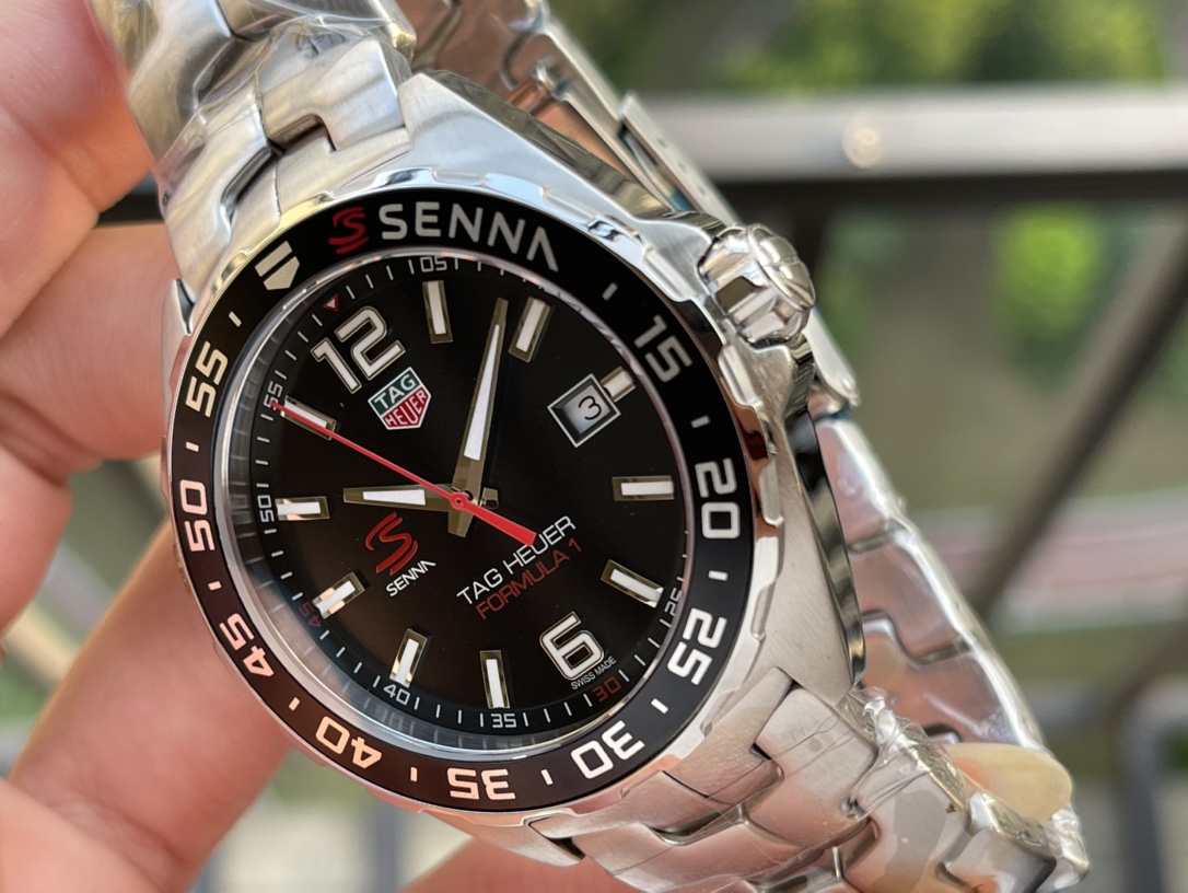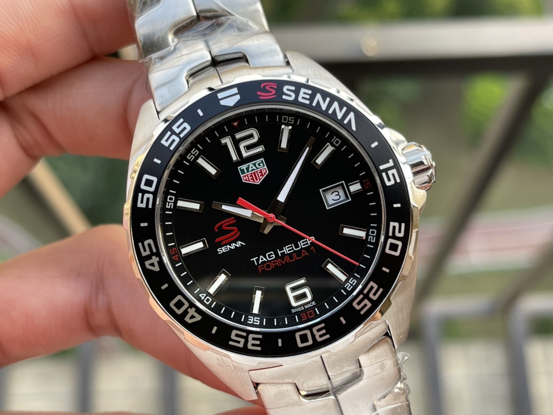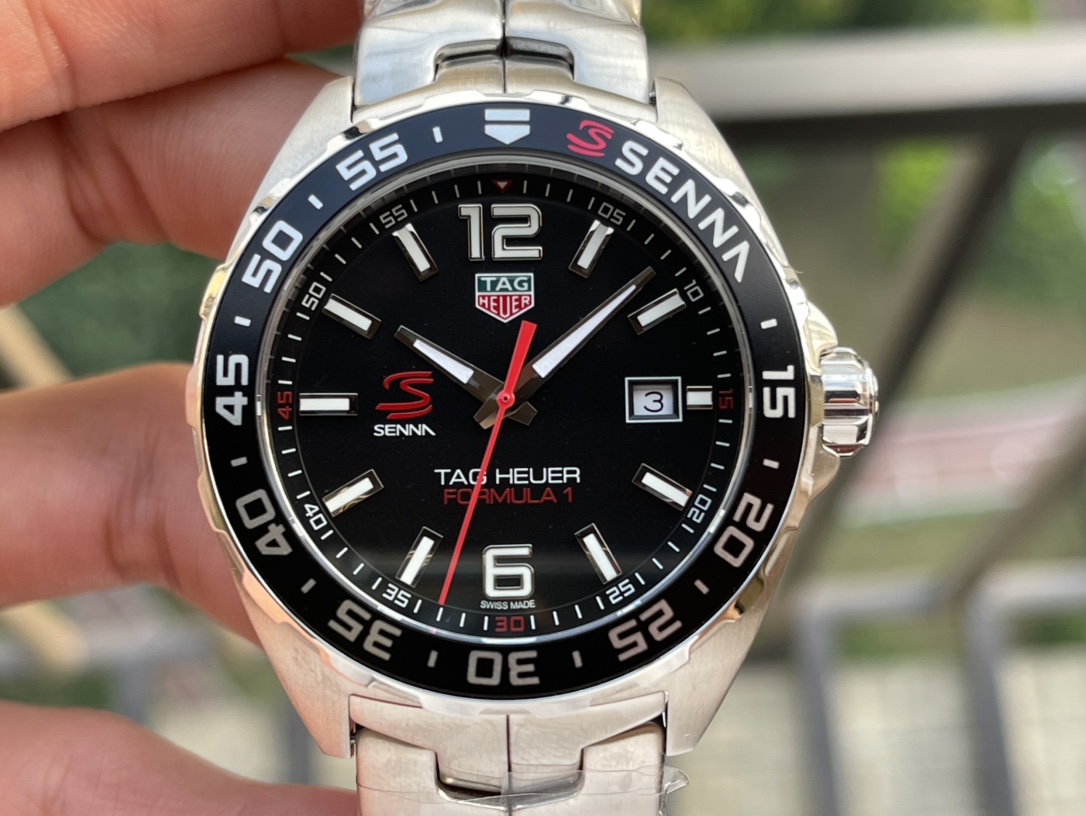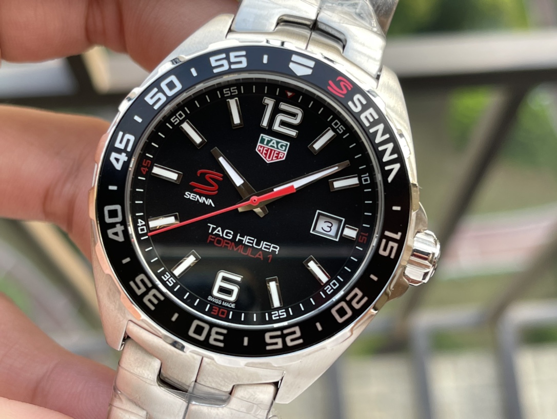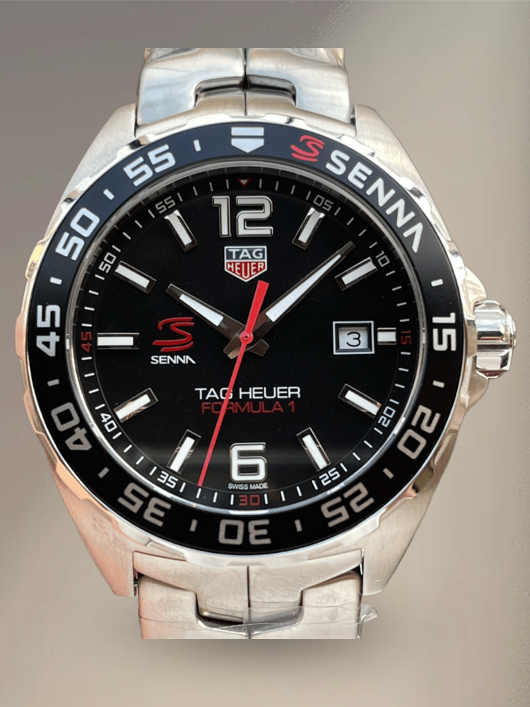 Men's TAG Heuer Formula 1 WAZ1012.BA0883 Replica Ayrton Senna Special Edition Watch – Black Dial, Stainless Steel Strap