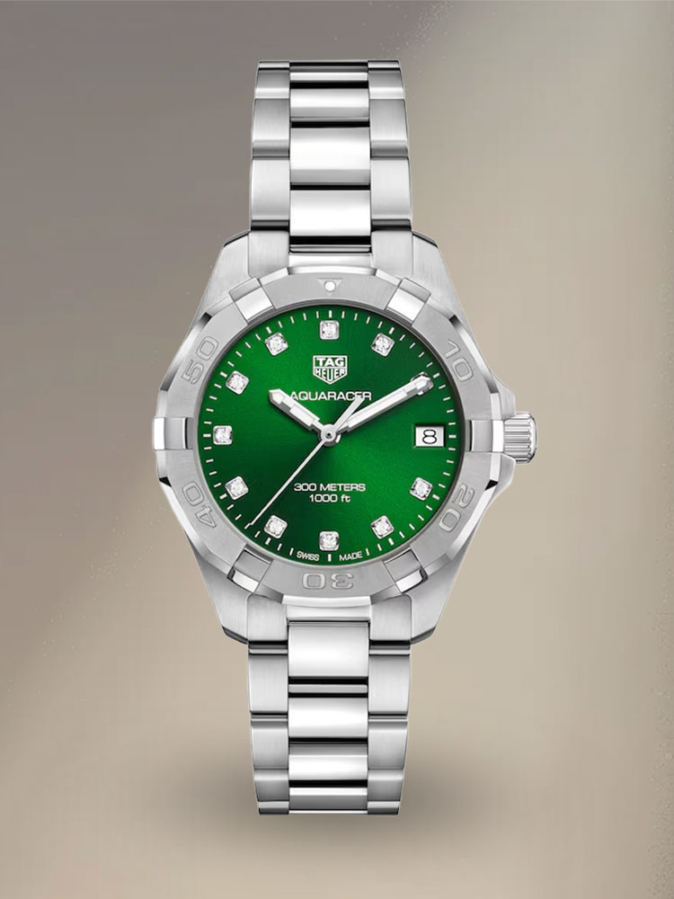 Replica TAG Heuer Aquaracer Women’s Watch – Super Clone 32mm Green Dial with Diamond Markers