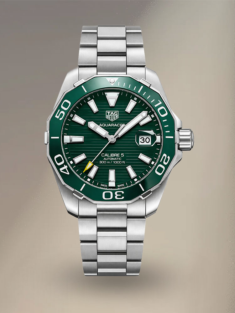Elevate your wristwear game with the TAG Heuer Aquaracer 300M Calibre 5 Replica – Ref. WAY201S.BA0927, a bold and adventurous diver's watch with a legendary 'Hulk' green face guaranteed to get attention wherever you go – on land or in the water.