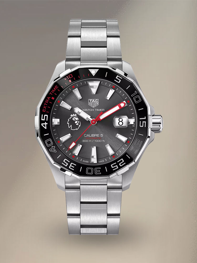 The TAG Heuer Aquaracer Premier League Special Edition is a tribute to the spirit of football as well as the importance of time-telling. The watch is a combination of the Aquaracer watch and special design features of the English Premier League.