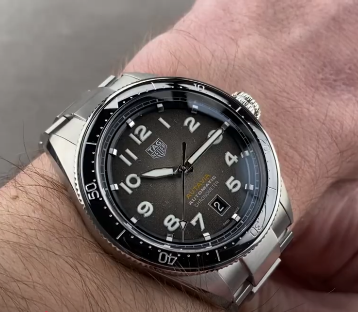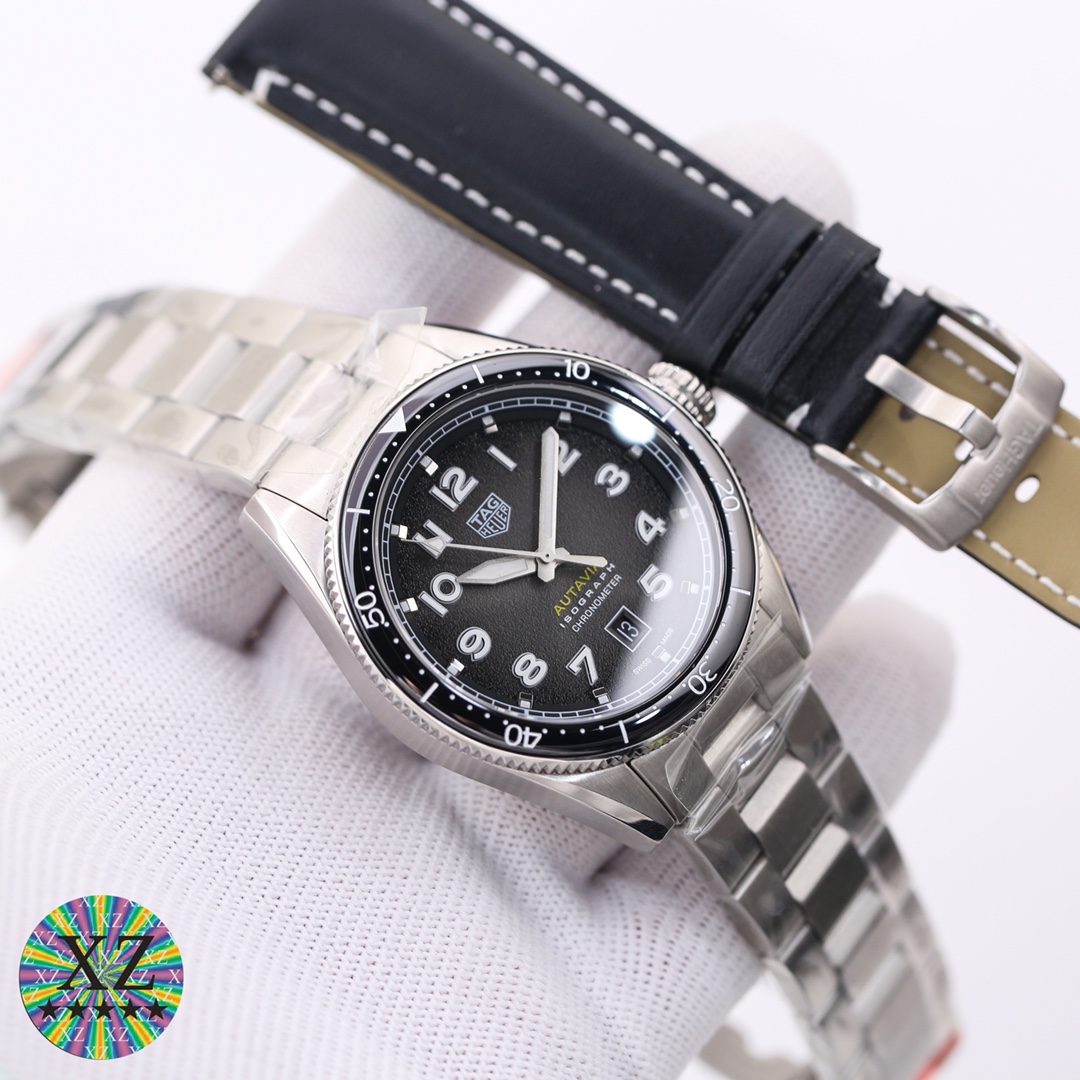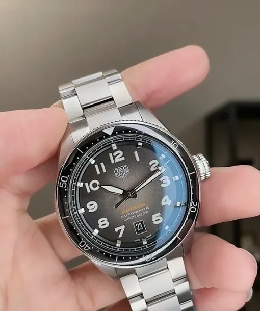 The TAG Heuer Autavia V2 Replica Watch blends the best of heritage and modernity. At 42mm, it is reminiscent of the vintage original Autavia series, encapsulating the very spirit of sport and adventure. A black-to-grey gradient dial, with a fine-grain texture, epitomizes elegant vintage flair. Polished hands with luminous filling add brightness, along with bold numerals and raised polished hour markers. A detailed minute/second track on the flange adds precision, while the date window at 6 o'clock offers practicality.