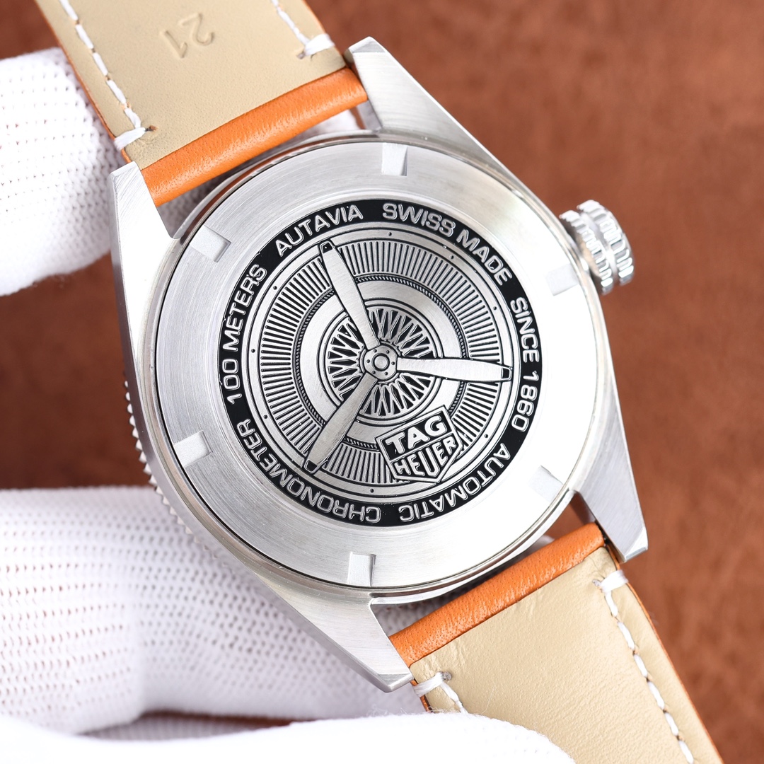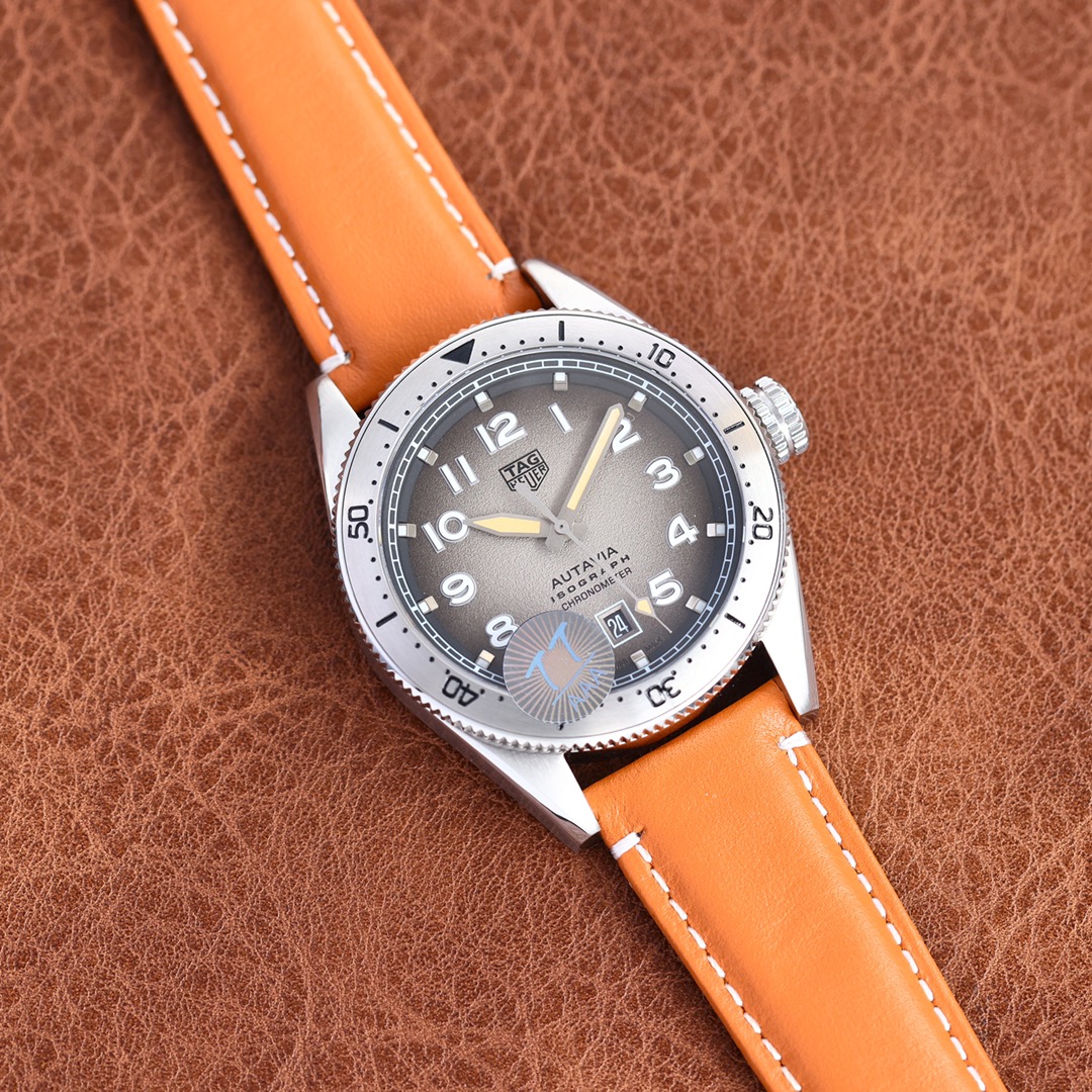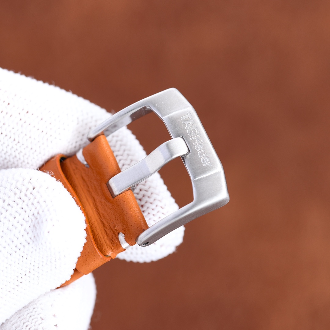 The leather strap of this sports watch is made from sumptuous orange leather, so it's stylish and comfortable for daily wear. Powered by a Swiss movement, it assures accuracy and performance. Whether it's a flexible accessory to add to your collection or a sturdy, trustworthy companion in the lives of the active, this new TAG Heuer Autavia replica is just what watch aficionados want, mixing elegance and precision.