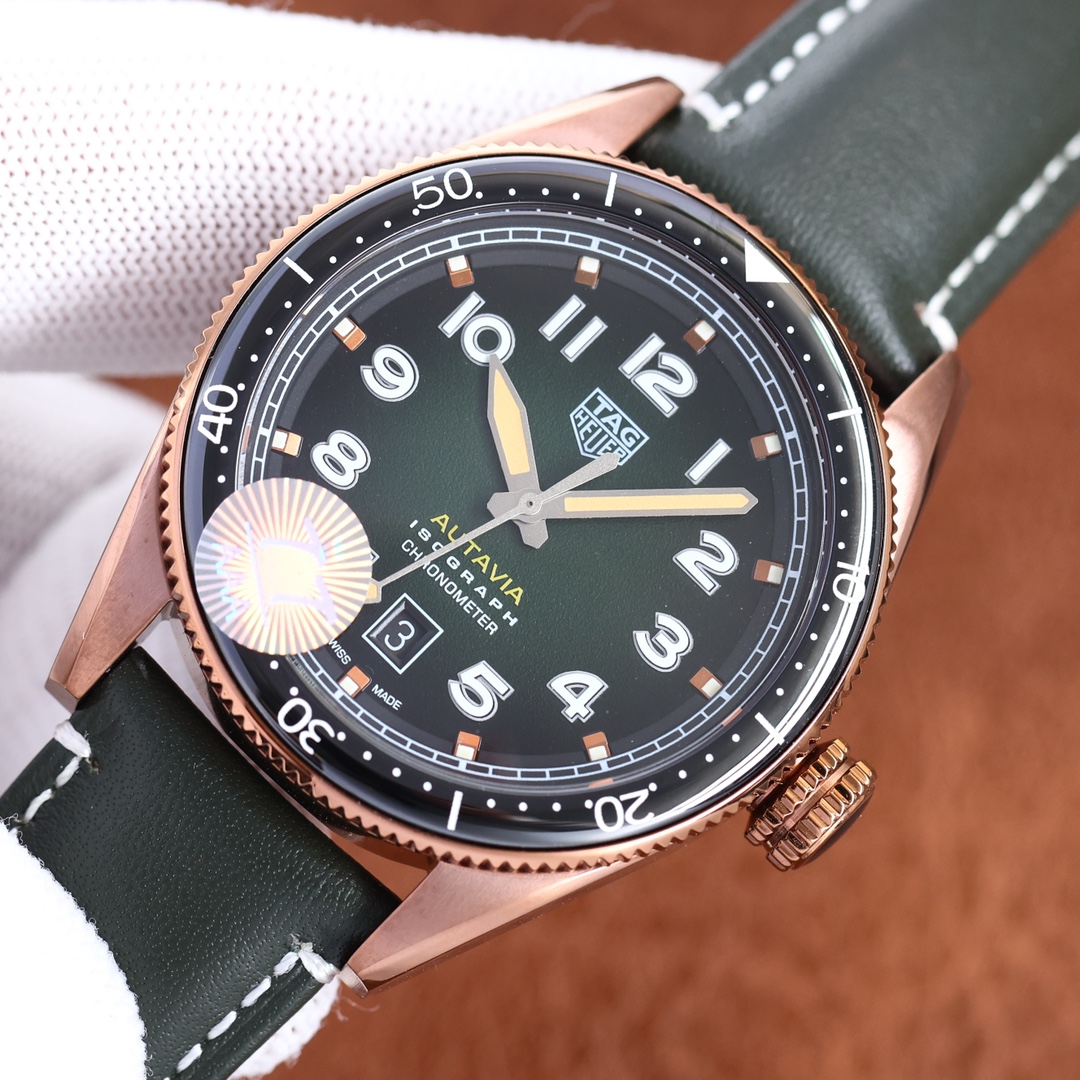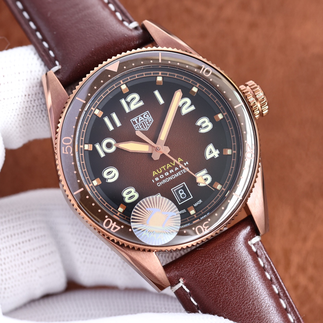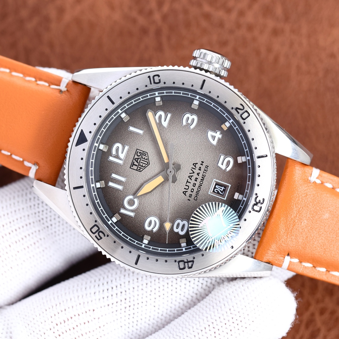 The leather strap of this sports watch is made from sumptuous orange leather, so it's stylish and comfortable for daily wear. Powered by a Swiss movement, it assures accuracy and performance. Whether it's a flexible accessory to add to your collection or a sturdy, trustworthy companion in the lives of the active, this new TAG Heuer Autavia replica is just what watch aficionados want, mixing elegance and precision.