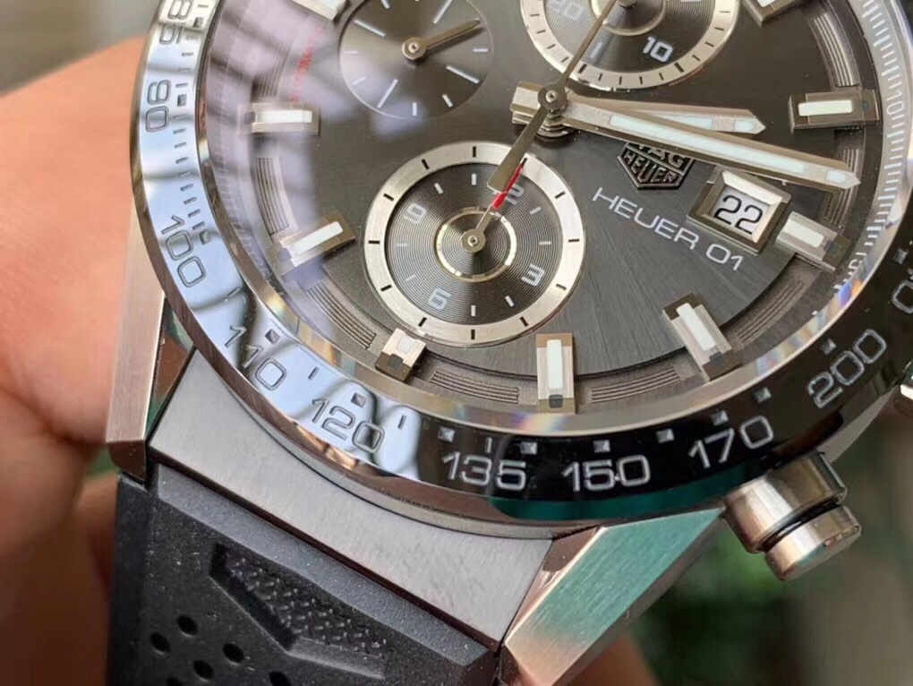 Elevate your wrist game to the next level with this incredible Super Clone TAG Heuer Carrera Calibre Heuer 01 Automatic Chronograph (Ref: CAR201W.FT6122). This 43mm masterpiece features a very advanced and sophisticated "Gunmetal Grey" dial with exceptional sunburst brushed finishes.