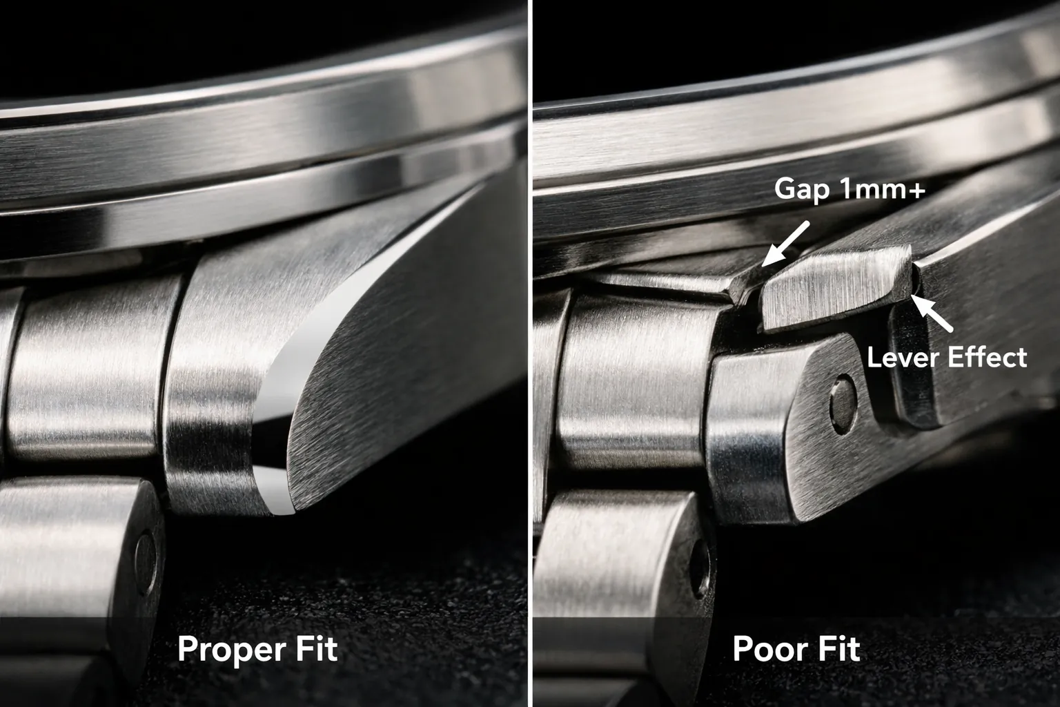 Em relógios esportivos estilo TAG Heuer–particularmente modelos Aquaracer com olhais curvados–a precisão da extremidade se torna altamente sensível. Observações da indústria sugerem que quando as lacunas de integração excedem 1 mm, o risco de marcas visíveis de pressão no pulso aumenta em aproximadamente 15–25% após uso prolongado.